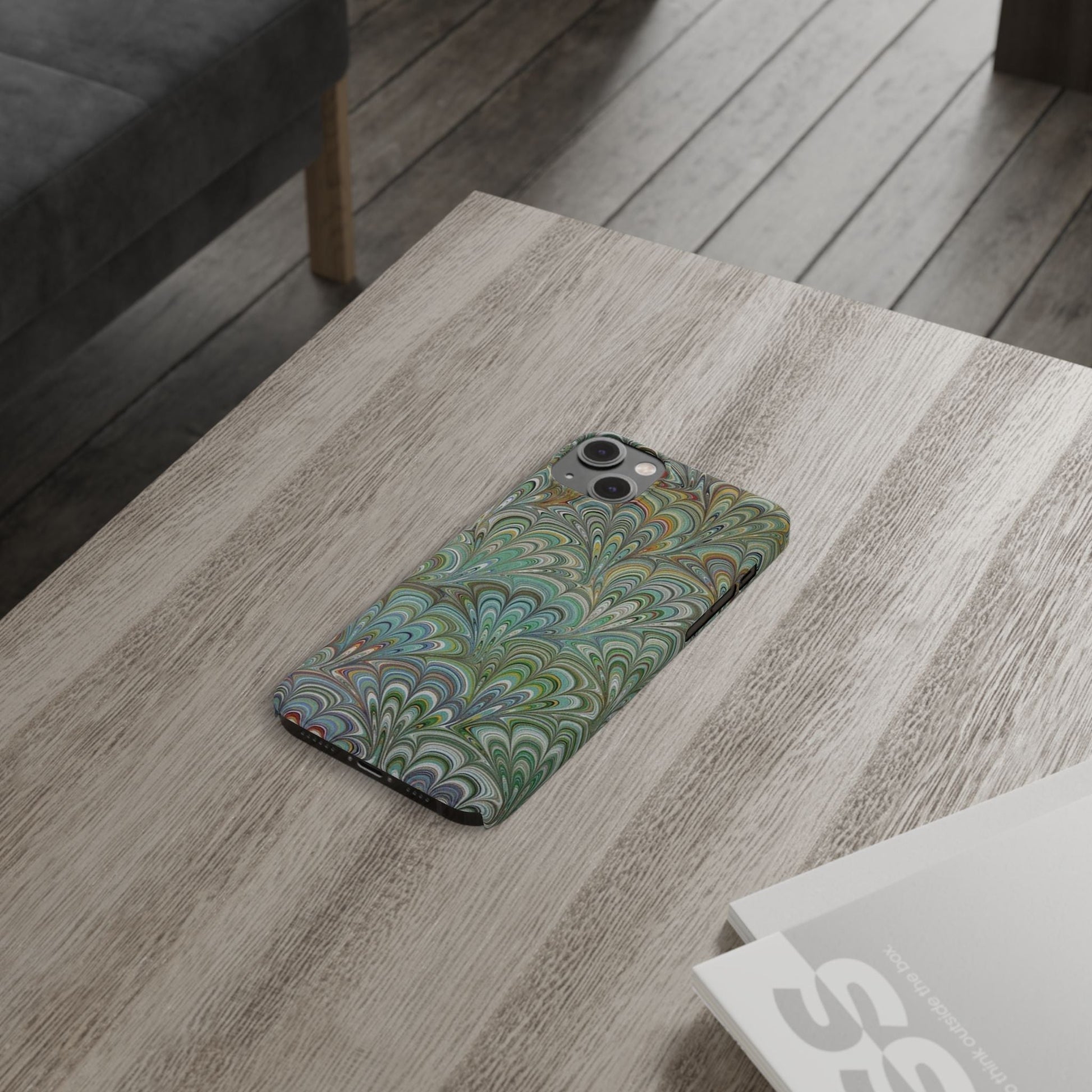 Deep Green Peacock Italian Marbled Design, Italy Feather Phone Case, Multi-Color, Slim Phone Cases, Case-Mate IPHONE16 and all sizes